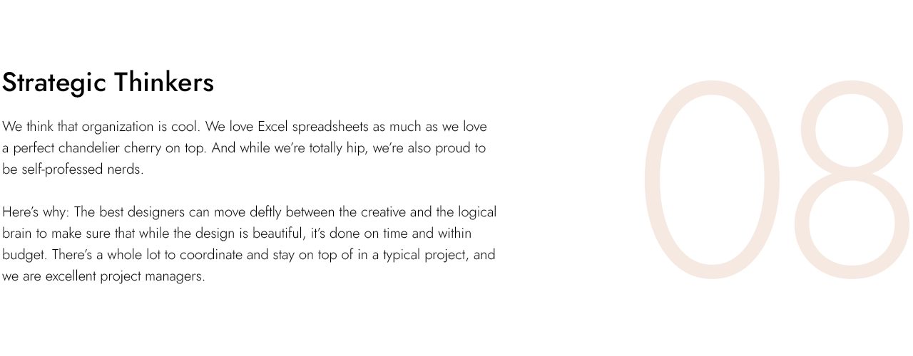 Working with the Sprinkman Design Collective has been an absolute pleasure! Their design expertise and attention to detail have elevated our transformation projects to new heights. Their professionalism and collaborative spirit make them an exceptional partner. Highly recommend Sprinkman Design Collective for anyone seeking top-notch design solutions!